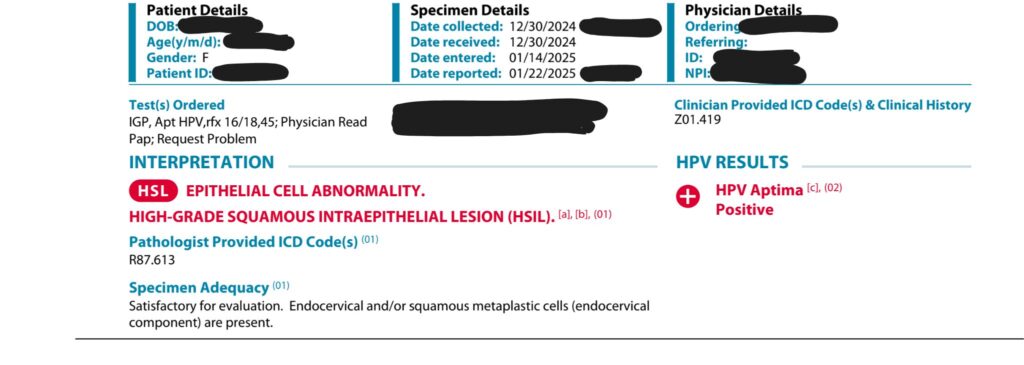 「どうせまた同じ結果だろうけど、そろそろ検査をしておこうかな」と軽い気持ちで検査を受けに行ったところ、結果は軽度異形成から高度異形成に進行していました。