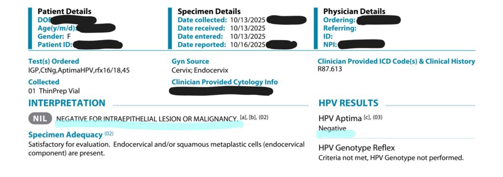 子宮頸がん検査を初めて受けたのが2020年。そのときに軽度異形成と診断されました。それから6ヵ月ごとに再検査とコルポスコピー(生検)を受け、経過観察をしていました。そんな中、2023年にアメリカに移住し異国で初めての子宮頸がんの定期検査を実施。そこでの結果も、いつも通りの軽度異形成でした。