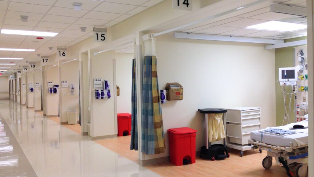 オペ前準備室のイメージはER(救急外来)のような造りで、ベッドはそれぞれカーテンで仕切られています。自分のベッドに荷物を置いてから、妊娠をしていないか確認するための尿検査をトイレで実施。そのあとは、おしりが丸見えなアメリカ特有の検査着と靴下を渡され着換えてベッドの上で待っていると、次から次へと看護師や主治医、麻酔科医が色々な質問や説明をしにやってきました。